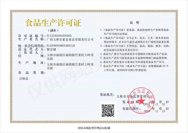 版權(quán)所有:廣西玉林市素金食品有限責(zé)任公司